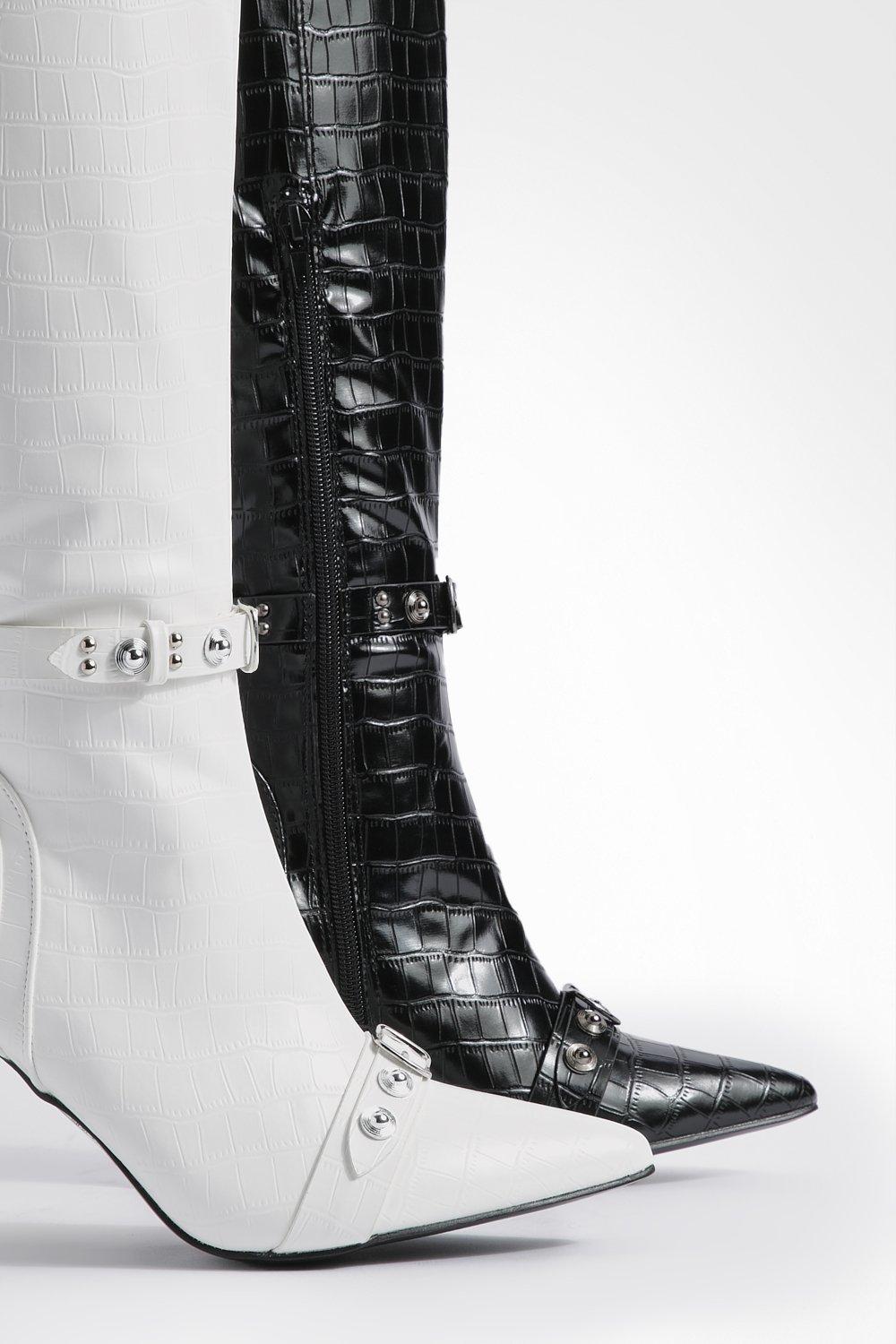 White croc new arrivals knee high boots