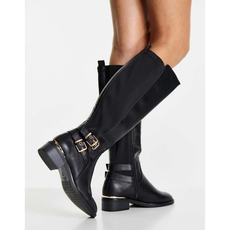 Botas planas new arrivals negras piel