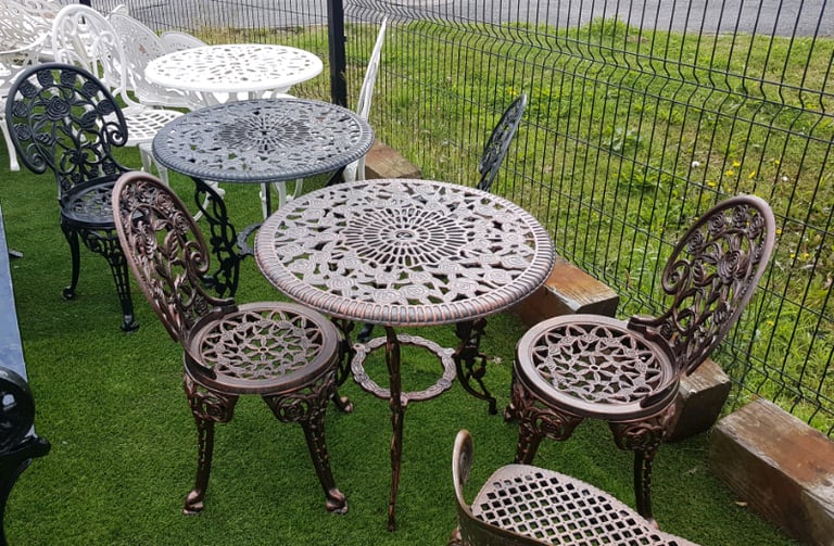 Cast iron table new arrivals and chairs second hand