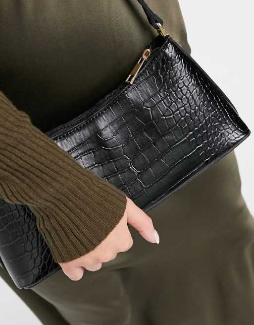 Black croc new arrivals effect shoulder bag