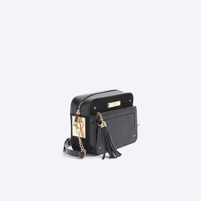 Black croc embossed new arrivals boxy cross body bag