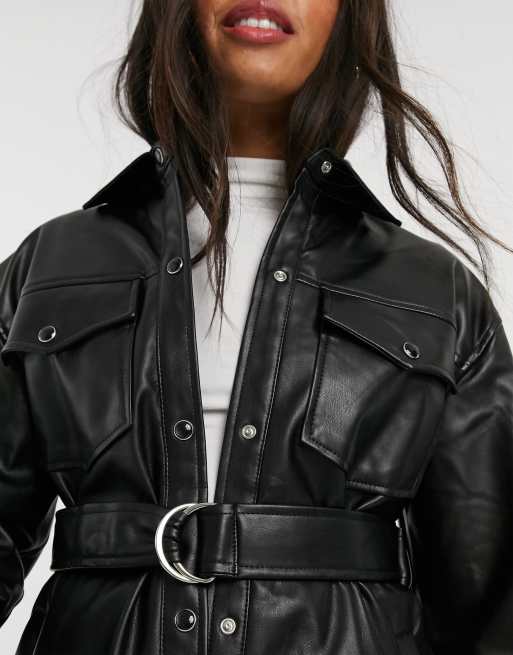 Veste en cuir new arrivals avec ceinture femme